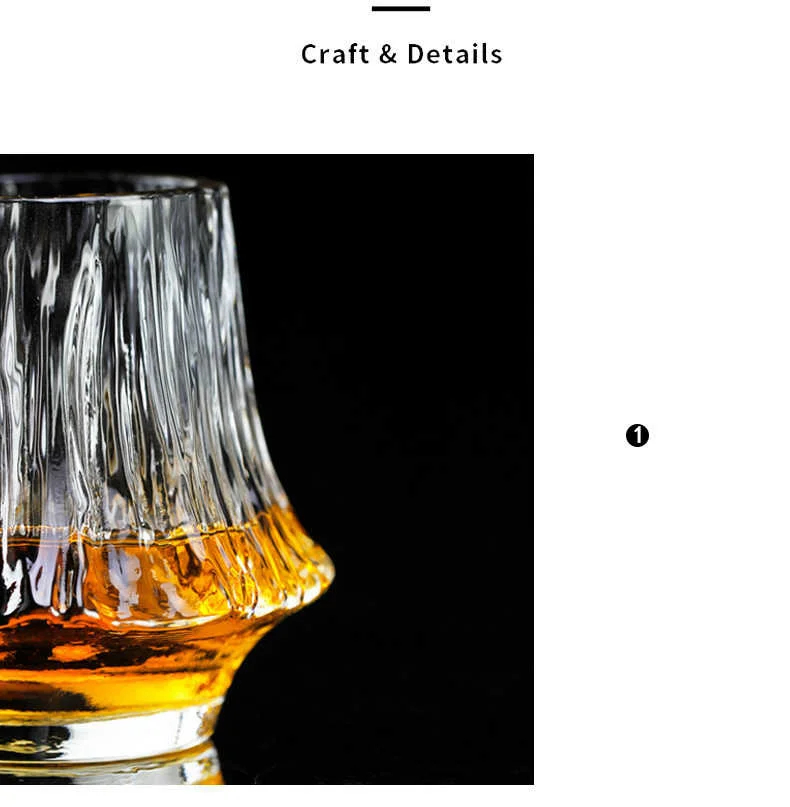 Le design artisanal, la base épaisse et la forme arrondie permettent d’apprécier pleinement la couleur, la viscosité et les arômes de votre whisky.