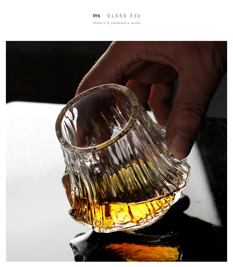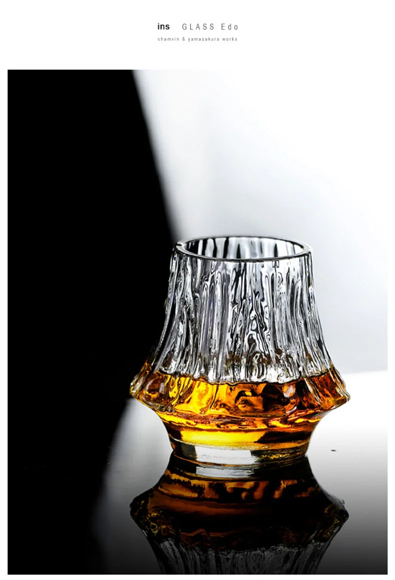 Imaginez un verre lourd, parfaitement équilibré, reposant dans votre main. Sa surface sculptée à la main reflète la lumière comme une montagne en feu. En versant votre whisky préféré, les reflets se mêlent au design japonais du verre et créent un jeu visuel hypnotisant.
